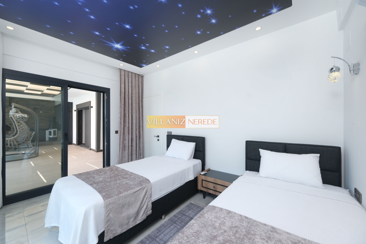 Sitemizde yer alan villaların detay sayfalarında yatak odası sayısı ve kapasiteleri yer almaktadır. Villalarda genel kural olarak kapasite üzeri konaklama talepleri kabul edilmemektedir.