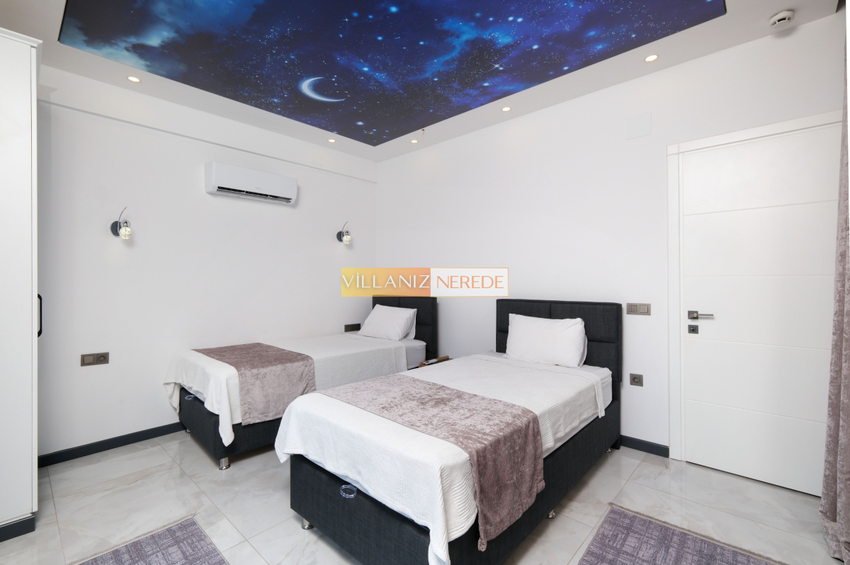Sitemizde yer alan villaların detay sayfalarında yatak odası sayısı ve kapasiteleri yer almaktadır. Villalarda genel kural olarak kapasite üzeri konaklama talepleri kabul edilmemektedir.